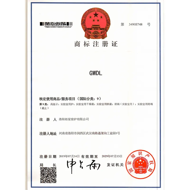 The GWDLTHERMO® trademark has been officially registered with the China National Intellectual Property Administration (Registration No.: XXXXXXX), with approved goods/services in Class 11, including industrial furnaces, heating devices, heat treatment equipment, etc. This trademark registration signifies that the enterprise's brand building in the thermal equipment field has obtained legal protection, laying a solid foundation for market expansion and brand value enhancement.