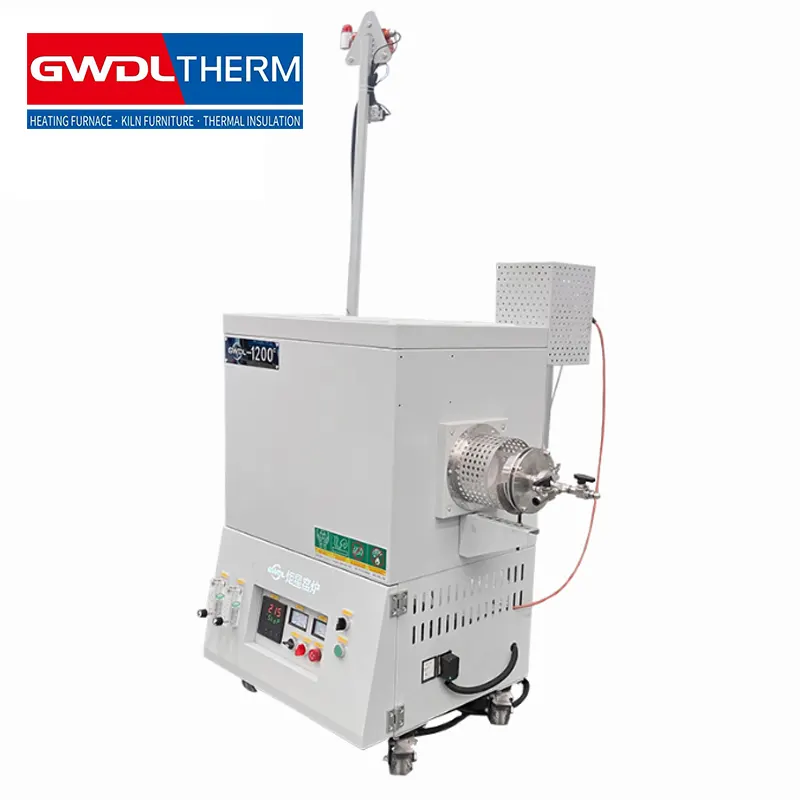 The 1200°C tubular electric furnace is designed for safe and precise heat treatment, featuring an integrated gas leak alarm for enhanced protection and reliable operation
